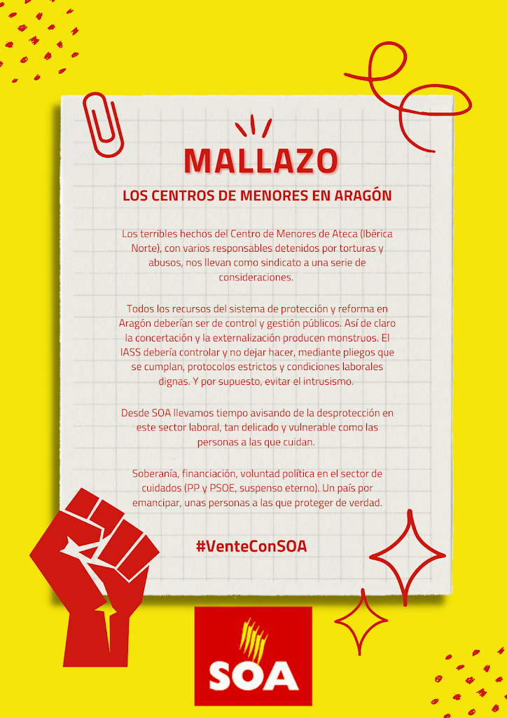 El Sindicato Obrero Aragonés apoya y participará en la manifestación convocada por la Federación de Asociaciones de Barrios de Zaragoza (FABZ) y la Asociación en Defensa de la Sanidad Pública en Aragón (ADSPA), ante la situación crítica del sistema sanitario aragonés, especialmente en Atención Primaria. Porque nos lo creemos y no acudimos, como otros, por […]